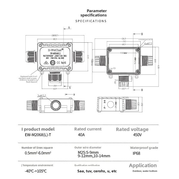 Engineered with a complete IP68 rating, this junction box offers absolute defense against dust, dirt, and continuous submersion in water, ensuring reliable performance in the most demanding outdoor, industrial, or underground environments.