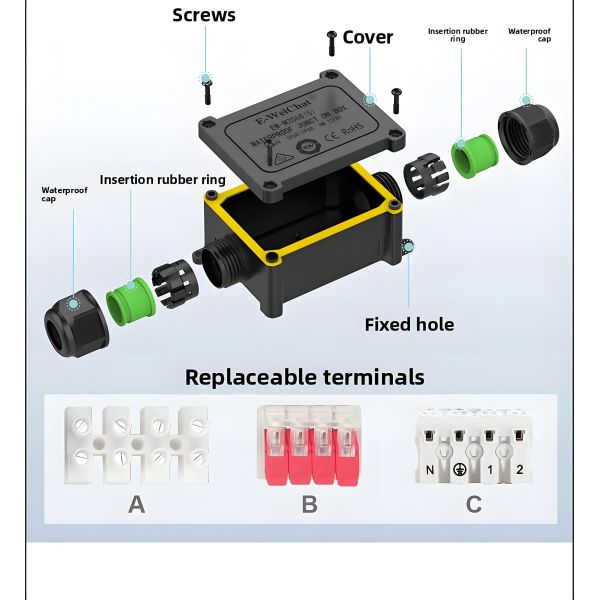Features built-in cable glands that provide a tight, strain-relief seal around cables, preventing pull-outs and protecting connection integrity.